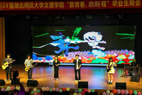 晚会在悠扬的《小雅,鹿鸣》合唱声中正式开启,舞台上群英荟萃,师生欢聚一堂,学生们自主创作的舞蹈、歌曲及小品纷呈出新。音乐社带来的《我乘着风飞过来》将晚会气氛推向高潮,展现了青春美好的画卷,寓意着梦想乘风翱翔,未来充满希望,满载对毕业生们的诚挚祝福。