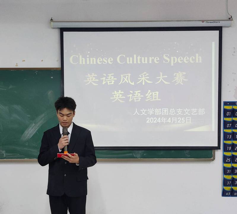 英语作桥梁,文化传世界。为丰富校园文化生活,创设良好的英语活动氛围,提升同学们对英语学习的兴趣,给学生提供展示个性、发挥特长、展现英语风采的平台,人文学部于4月25日晚在教学楼1A201、1A203举办以“Chinese Culture Speaks”为主题的英语风采大赛。此次活动旨在激发大学生对祖国、对中华传统文化的热爱之情,提升学生的文化自信,传递中国文化正能量。