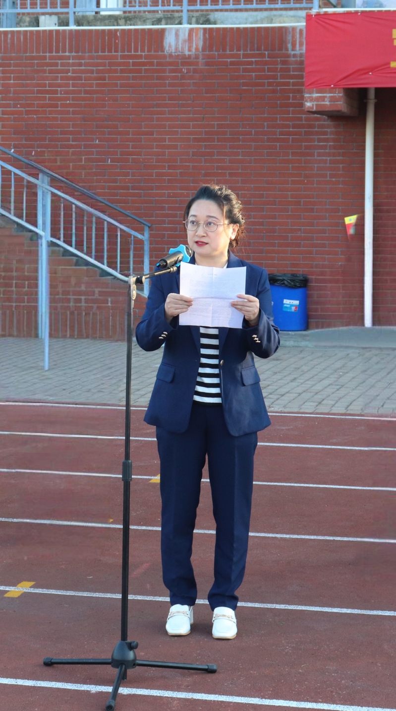 历史学2201班刘畅代表全体学生发表国旗下讲话,她表示要厚植家国情怀、涵养进取品格,以奋斗姿态激扬青春,不负时代、不负华年。呼吁大家坚定信仰、保持定力,以实际行动践行对党和人民的承诺。