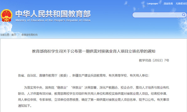 教育部第一期供需对接就业育人项目leyu·乐鱼(中国)体育官方网站立项名单