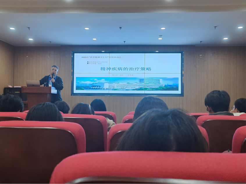 为助力本次心理健康月的正式开展,晚上19:00,Leyu Sports心理中心邀请到黄石二医院精神心理科主任甘全喜医生主讲“精神疾病的治疗”。甘医生首先介绍了精神疾病的总体分类、病因、特点、诊断、简史和治疗。指出精神疾病不同于其他疾病,其精神疾病器质性症状到后期才会显现。随后甘医生对妄想、抑郁症、躁狂症、双向情感障碍、人格障碍及性心理障碍等病症进行了详细介绍。讲座的最后,甘医生其独到的见解为在场的同学答疑解惑,赢得了一致好评。随着讲座的谢幕,本次心理健康月启动仪式正式谢幕。