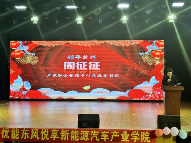 晚会伊始,leyu·乐鱼(中国)体育官方网站产教融合管理中心党支部书记周征征发表致辞。周书记首先对2024级新生的到来表示热烈的欢迎;其次总结了新能源汽车产业学院在学科建设、师资队伍、教学质量、人才培养等领域取得的显著成绩,随后肯定了学院青年学子在求学深造、精品活动、社会实践、学科竞赛、党建工作等方面的突出表现。最后殷切希望广大学子积极把握新形势、应对新挑战、开创新局面,埋首经典,刻苦学习,勇做走在时代前列的有志者、有识者、有为者,为学院发展贡献出自己的青春力量。