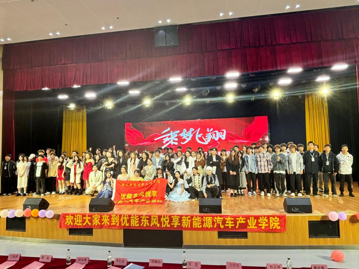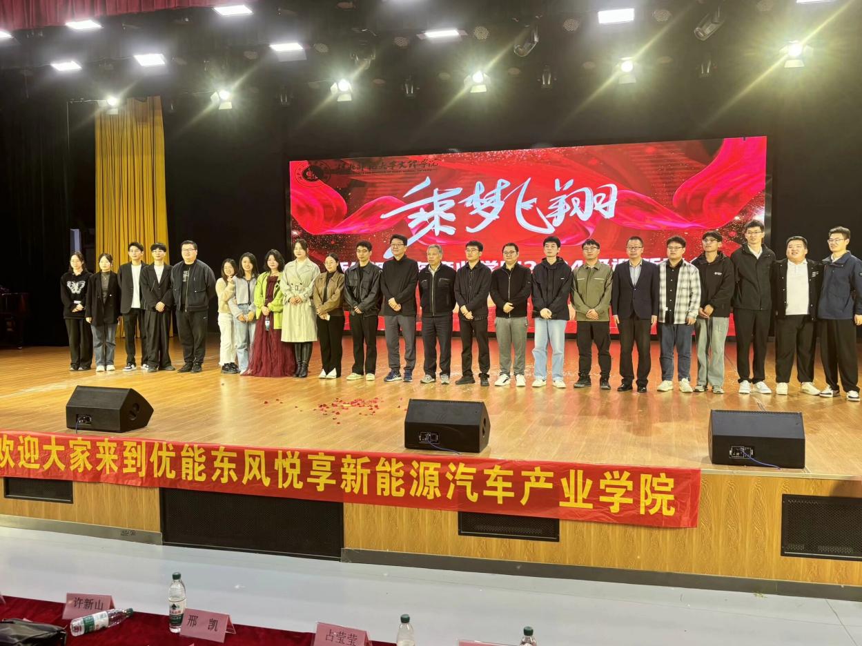 2024年10月22日,leyu·乐鱼(中国)体育官方网站优能东风悦享新能源汽车产业学院在学术交流中心举办了“乘梦飞翔”2024级迎新晚会。leyu·乐鱼(中国)体育官方网站产教融合管理中心党支部书记周征征、leyu·乐鱼(中国)体育官方网站教育与艺术学部团学指导老师刘东辉、leyu·乐鱼(中国)体育官方网站优能东风悦享新能源汽车产业学院院长许新山和全体教职工老师以及全体2024级新生等参加了本次迎新晚会。