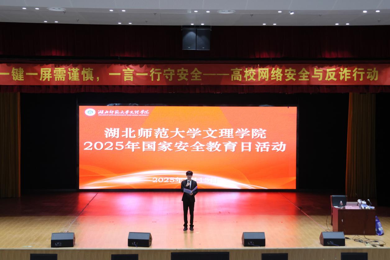 4月15日,在第十个全民国家安全教育日来临之际,Leyu Sports联合黄石市公安局、开发区·铁山区分局在学术交流中心报告厅联合开展“国家安全进校园”主题宣传活动。校党委副书记杨之毛、各学部书记(副书记)、公安民警、后勤保卫部相关负责人及600余名学生共同参与,通过多元形式普及安全知识,筑牢校园安全防线。