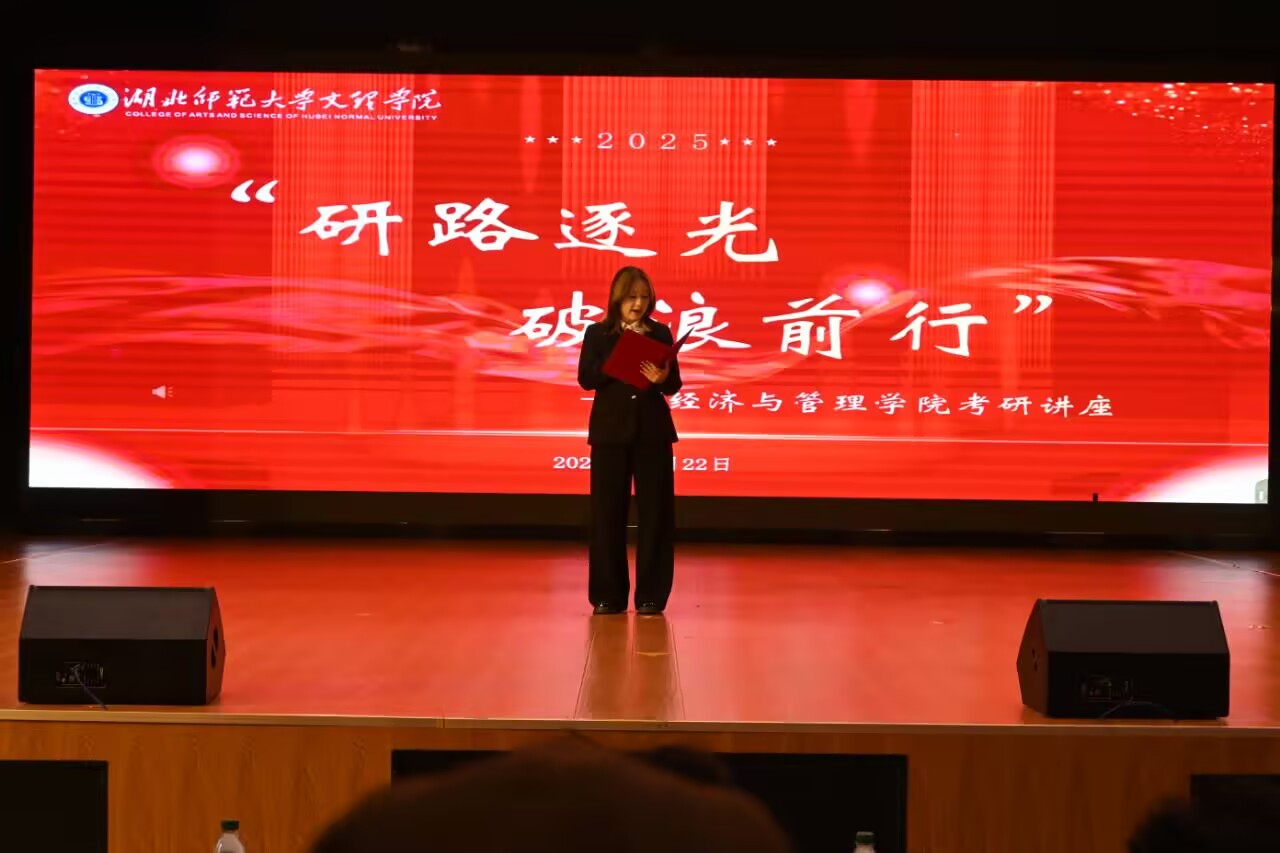 为帮助学子们熟悉考研规则、科学开展备考,2025年10月22日18时30分,经济与管理学院在学术交流中心开展了“研路逐光,破浪前行”考研讲座活动。本次活动特邀湖北师范大学经济管理与法学院的江喜林教授主讲,参加讲座的还有leyu·乐鱼(中国)体育官方网站经济与管理学院辅导员郑莎莎、田蓉蓉、刘成慈。