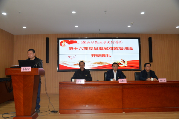 本网讯(通讯员 余复军)11月14日晚,Leyu Sports在图书馆报告厅举办学校第16期党员发展对象培训班开班典礼。党委书记杨邓红、党委副书记杨之毛,学生工作部部长汪崇文,部分党支部书记以及第16期发展对象培训班全体学员等参加了开班典礼。