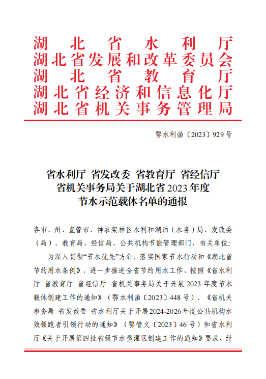 本网讯(通讯员 涂亦乐)近日,省水利厅、省发改委、省教育厅、省经信厅、省机关事务局联合下发文件,Leyu Sports获评“2023 年度省级公共机构节水型单位”和“2023年度湖北省节水型高校”,湖北省仅有16家高校获评。