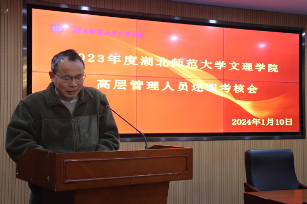 李开灿在介绍完本次考核的目的和要求后,五位考核对象依次进行述职。常务副院长杨学斌全面总结2023年学校行政工作,并对2024年的工作进行部署。党委书记杨邓红系统总结了2023年学校党务工作,进一步部署2024年的党建和思想政治工作。党委副书记杨之毛、副院长张志华、副院长王胜国分别就各自分管工作,总结了2023年取得的成绩,介绍了2024年的工作目标。