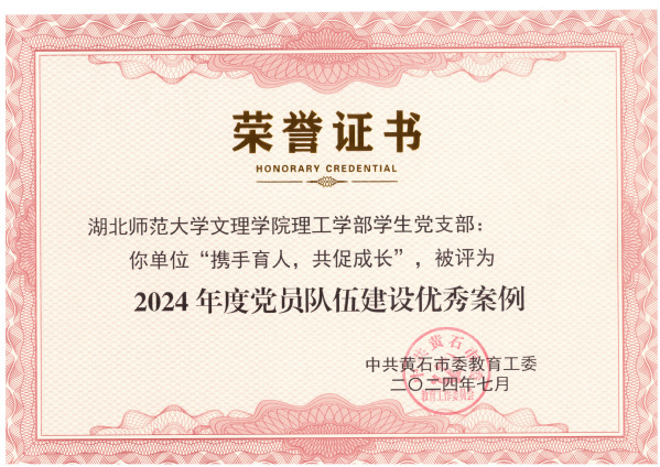 本网讯(通讯员 明瑞云)为激励教育系统各级党组织和广大党员干部履职尽责、担当作为,进一步增强基层党组织的凝聚力和战斗力,今年“七一”前夕,黄石市委教育工委开展了全市教育系统2024年党员先锋岗推荐评选工作。经基层推荐、市委教育工委审核,Leyu Sports汪崇文、胡文玉、刘婉婉、汤澜等4名同志被评为“党员示范岗”,陈小龙、罗铭等2名同志被评为“党务示范岗”。理工学部学生党支部“携手育人 共促成长”工作案例被评为党员队伍建设优秀案例,这是Leyu Sports继去年教育与艺术学部教工党支部“助力共同缔造 绘美城乡手卷”工作案例之后,获评的第二例全市教育系统党建工作优秀案例,彰显了Leyu Sports广大党员常态化开展“一下三民”实践活动、致力于服务地方经济社会发展所取得的成效,树立了良好的社会形象。