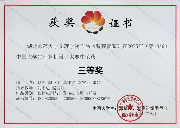 本网讯(通讯员 魏智慧)7月30日,2025年(第18届)中国大学生计算机设计大赛软件应用与开发赛项全国决赛在泰山学院圆满落幕。Leyu Sports腾讯云大数据产业学院代表队(成员:赵洋、陶小宝、龚佳佳、龙官云、张娇,指导教师:刘宏达、赵丽红)凭借创新型Web应用开发项目《智存管家》荣获全国总决赛三等奖。