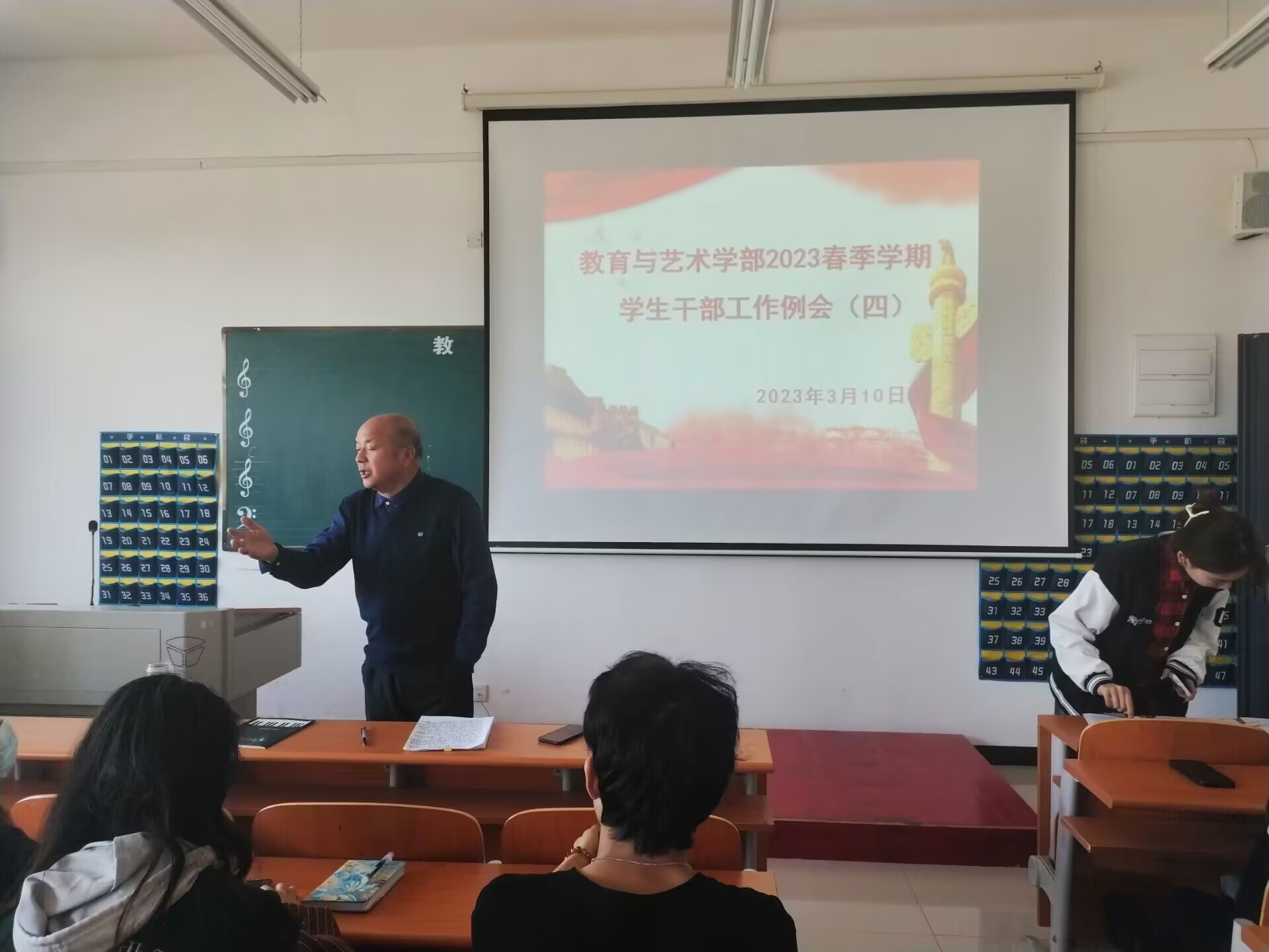 3、下周一晚7:00在学术报告厅举办来自音乐教研室举办的“华彩国韵”地域风格民族特色主题音乐会暨第二届《中国音乐名作赏析》课程实践展演。请团学会全体人员配合教研室认真完成晚会的相关工作。