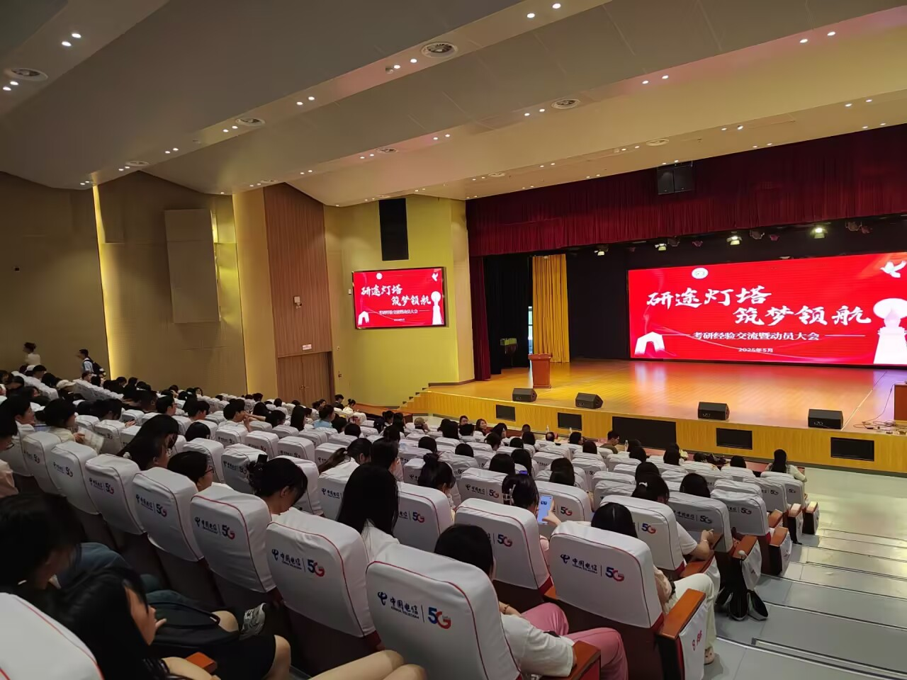 在学生经验分享环节,多位考研上岸学生依次发言,围绕院校及专业选择、各科复习重点、资料筛选与使用等实用内容展开交流,分享备考期间的具体方法与心得。针对在场学生提出的复习进度安排、压力调节等问题,他们结合自身经历进行细致解答,现场互动热烈,氛围浓厚。